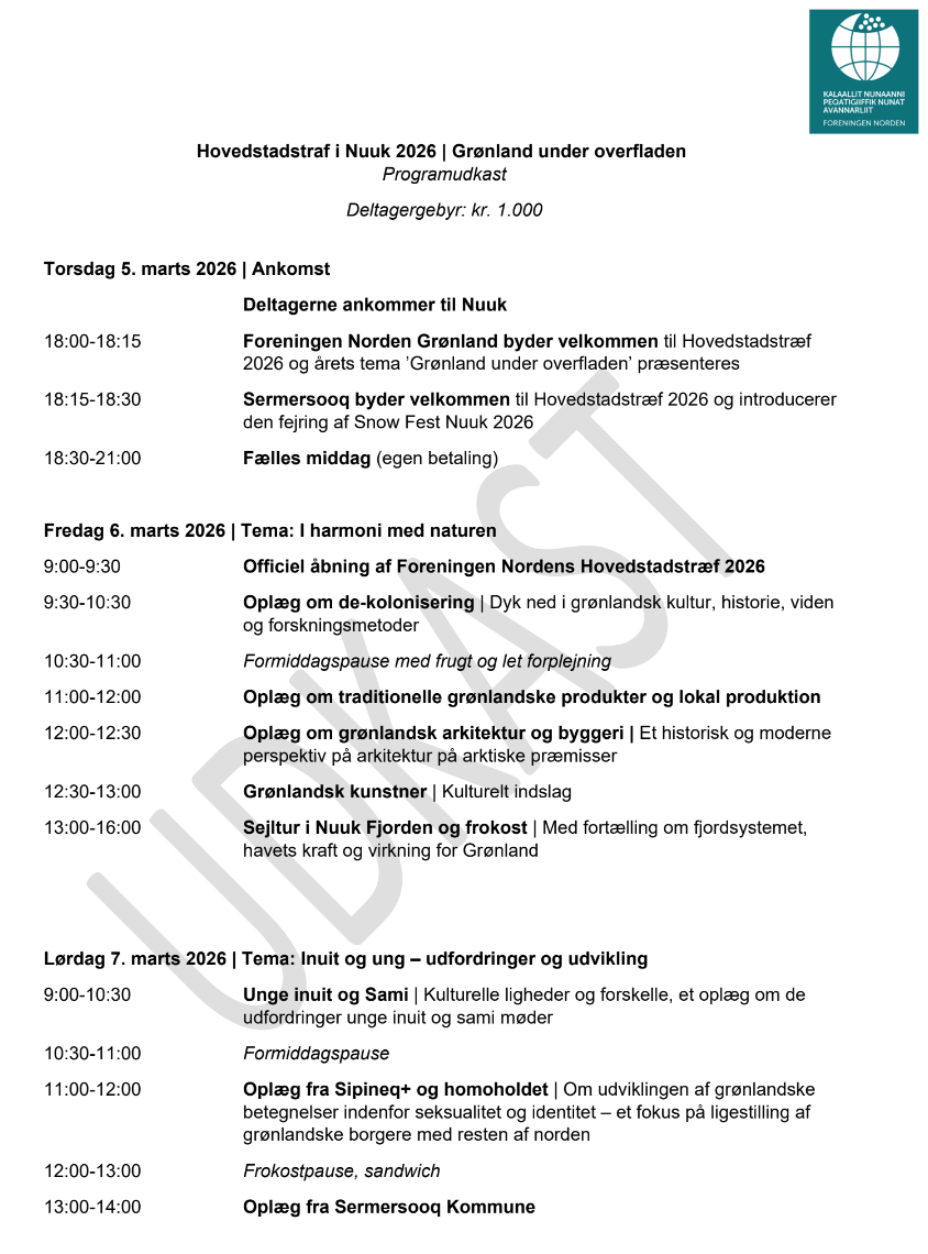 Pääkaupunkikokous järjestetään Gröönlannissa 5.-9.3.2026. Alla virallinen kutsu tapahtumaan, alustava ohjelma, sekä tietoa matkan hinnasta ja ilmoittautumisesta.