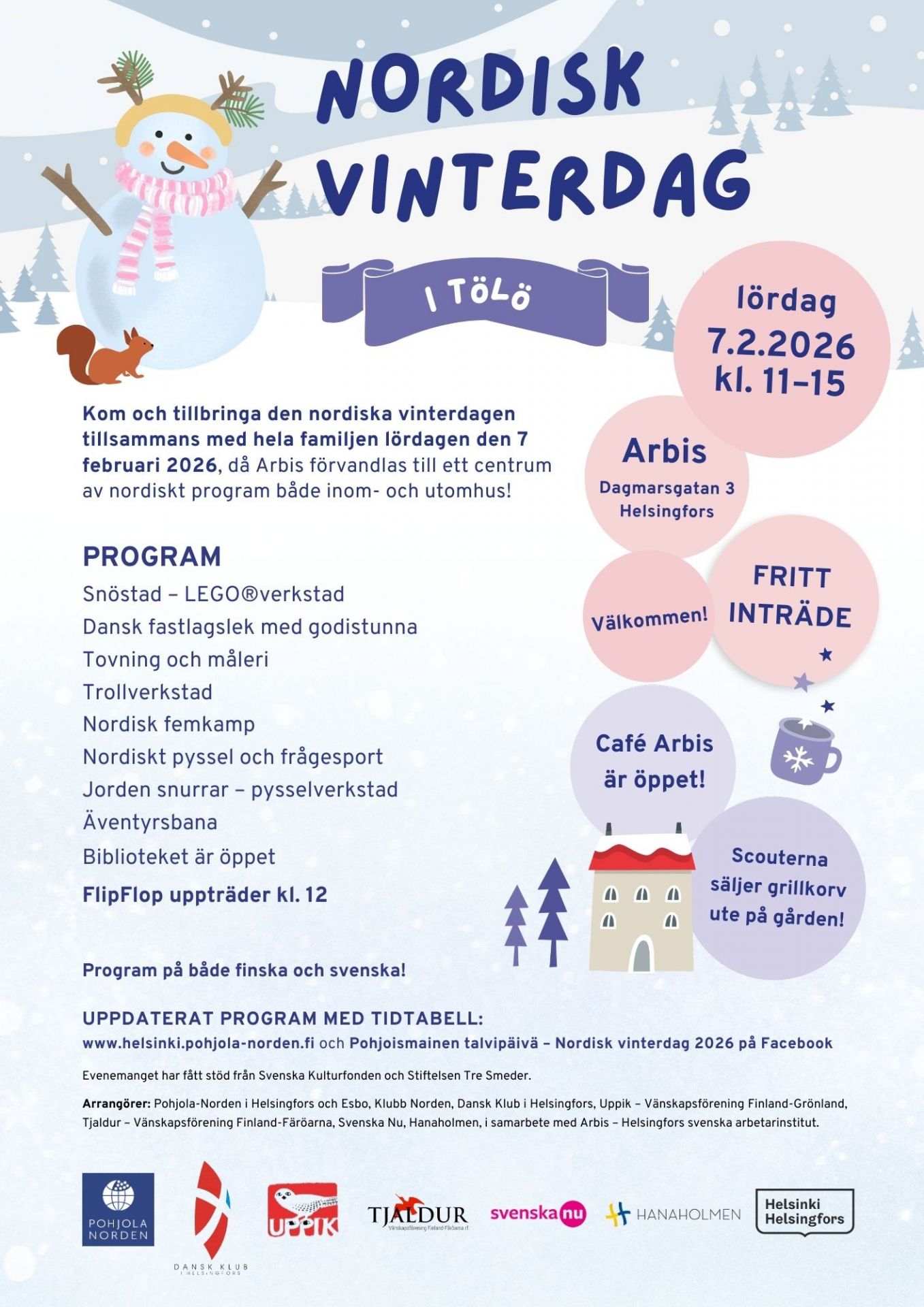 Tule viettämään koko perheen pohjoismaista talvipäivää lauantaina 7.2.2026, kun Arbis muuttuu pohjoismaisen ohjelman keskukseksi täynnä ohjelmaa sisällä ja ulkona!